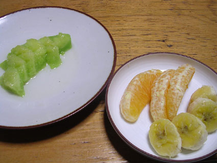 最後は、フルーツでサッパリと締めたい。選んだのはアンデスメロン、オレンジ、バナナの3つ。