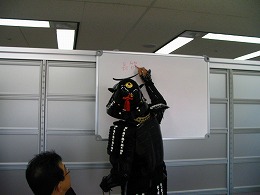 来て下さった方々に本を渡す。そのあとおじぎをするのだが、あまり深く頭を下げすぎると、兜についている飾りのとがった部分が当たってしまいそうで危ない。その辺の危機管理はちゃんとできる鎧でいたい。