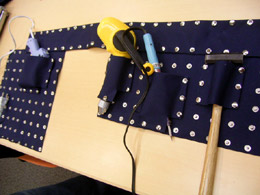 布地を最初から紺色を選んでいたのも、ポケットに 「○乙」 と酒屋の前掛け風に描いたのも、念頭には 「職人」 ビジュアルがあったからだと思う。