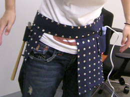 おそるおそる腰に巻きつけてみる。ホックが多いとはいえ、力を入れればブチブチッ!と分解してしまいかねない。