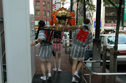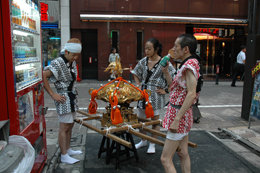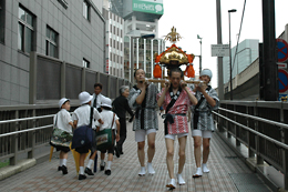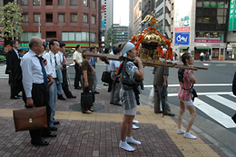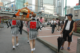 渋谷、青山、新橋とお神輿を担いで練り歩いた。