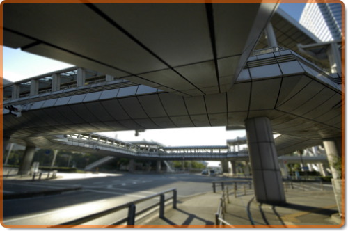 とくに新都心系の街区にはこれまで紹介した、バリアフルに淡々と利用者を待ち続け、挙句に登るのしんどいからと車道を横切られてしまう老舗歩道橋をあざ笑うかのような、快適に利用できる歩道橋が多くある。