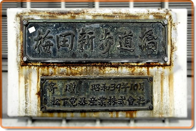 実は日本で最初の歩道橋は愛知県の枇杷島という場所にある。1959年に作られたものだ。大阪の歩道橋は松下電器産業が寄贈したもので、同社のサイトにも「日本最大(当時)の歩道橋を当社が建設し」とある。同社、って言ってもまあぼくが勤めている会社なんですけども。