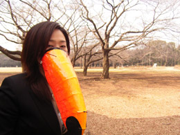 なぜ上の写真で、私がかわいく指を一本立てているかというと、その指でクチバシを支えていないとずり落ちるためである。