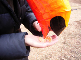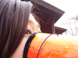 では私がやってみるといったいどうなるのだろうか。みかん一房で試してみる。 |