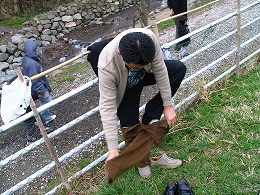 どうもさっきより距離を置いている感じのヤギ。通常モードでは手にした草を食んでくれたのだが、今は地面に生えてる草に夢中。なんでだ、こっちに来ておくれよ。