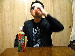 「体にいいこと」のコンセプトに習って飲むのは野菜ジュース。うん、うまいぜ!うすうす気づいていたことですが、コワモテでいると何をやってもコミカルに見えます。