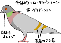 全体に淡いトーンで塗り分けられたハト。