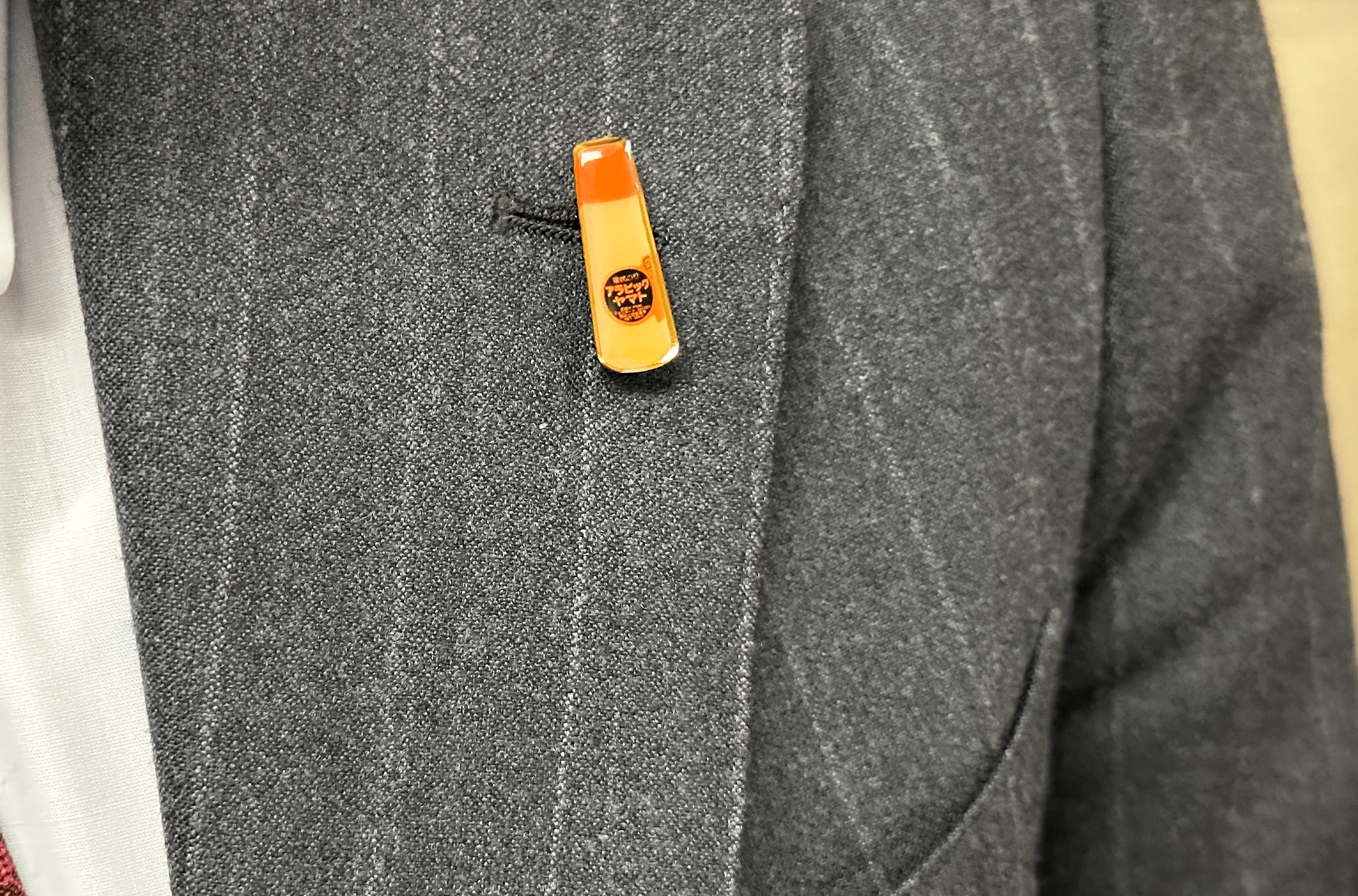 のりのヤマトに取材。アラビックヤマトのピンバッチをつけていると人に話しかけられるそうだ。
