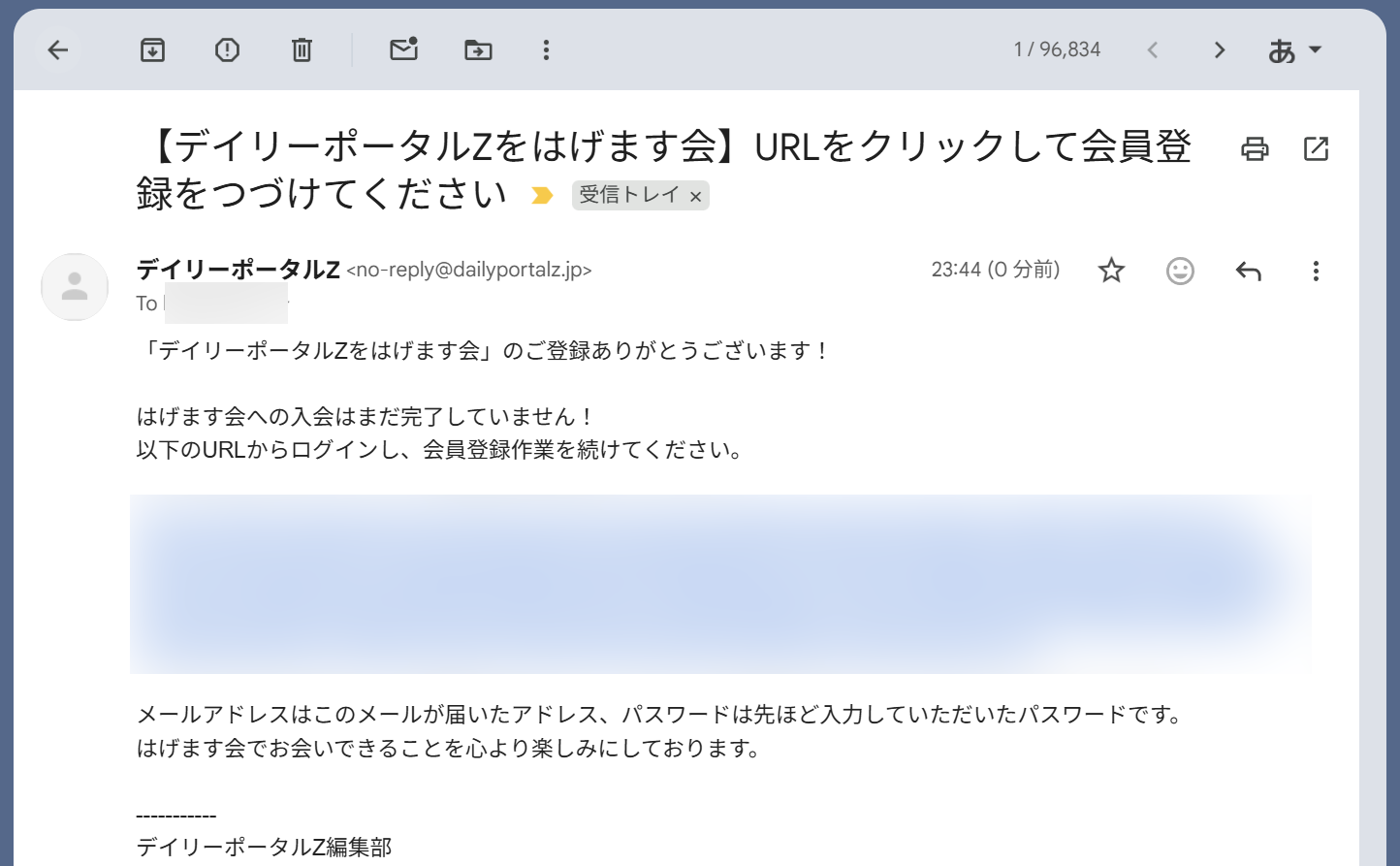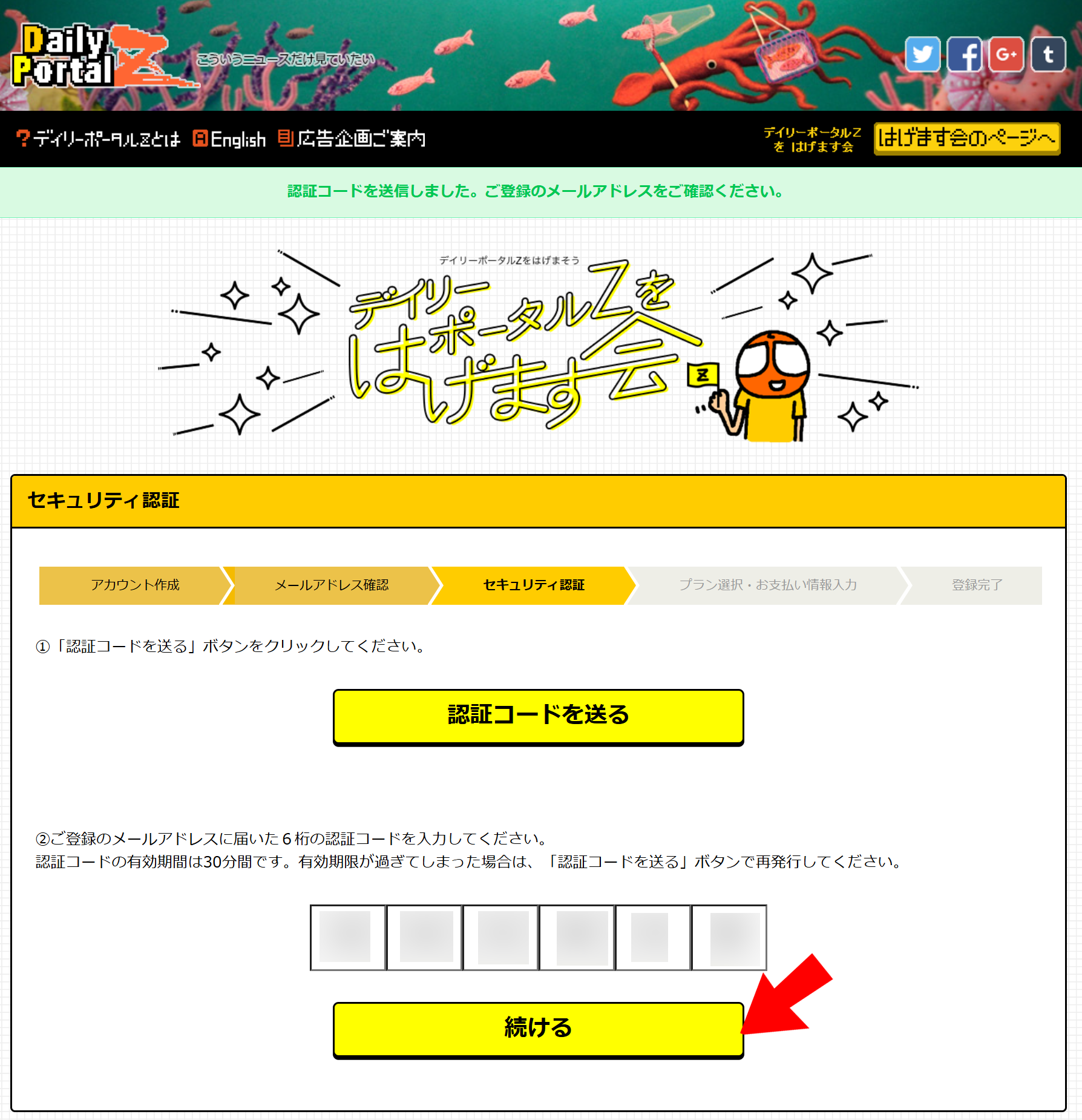 すると入力したメールアドレスに6桁の認証コードが届いています。