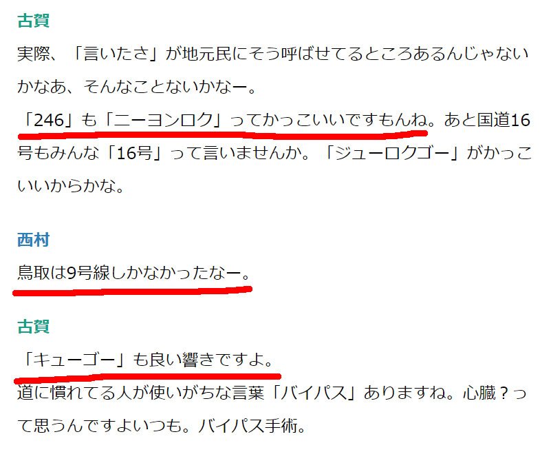 鳥取には9号しかなかったと嘆く西村さんに「キューゴー」の響きも良いとはげます古賀さん。こんなはげまし方があるのか。