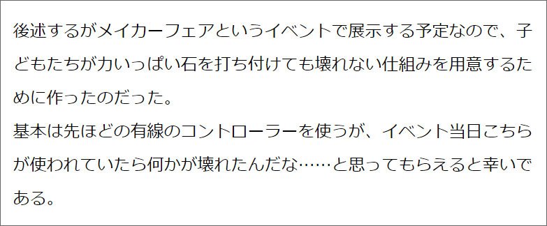 でもメイカーフェアでは乱暴に扱われるという巨大なハードルがあるんですよね。