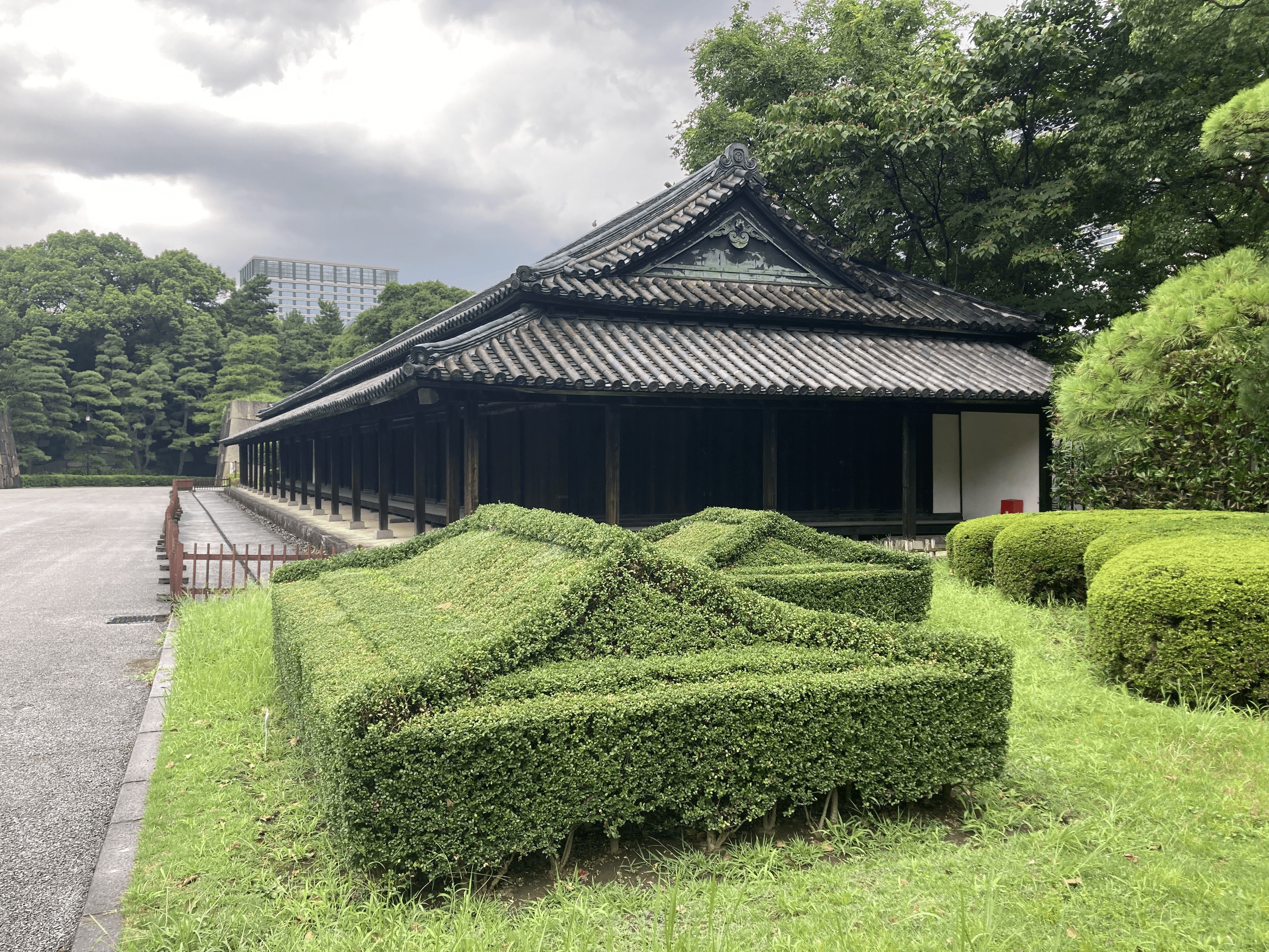 皇居の東御苑のなかにある植え込み。奥にある百人番所と同じ形に選定されています。この誰にアピールするでもない小粋さ。