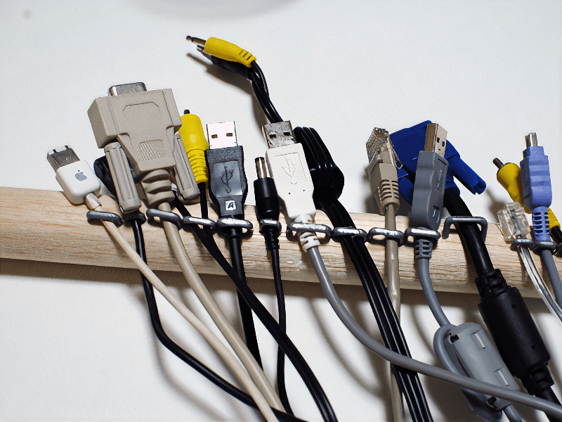 登場するケーブルに時代を感じてください。ファイアワイアってありましたね。機器が新しくなるたびにケーブルが余るので、どこかに縛るお地蔵さんがあるといいですよね。