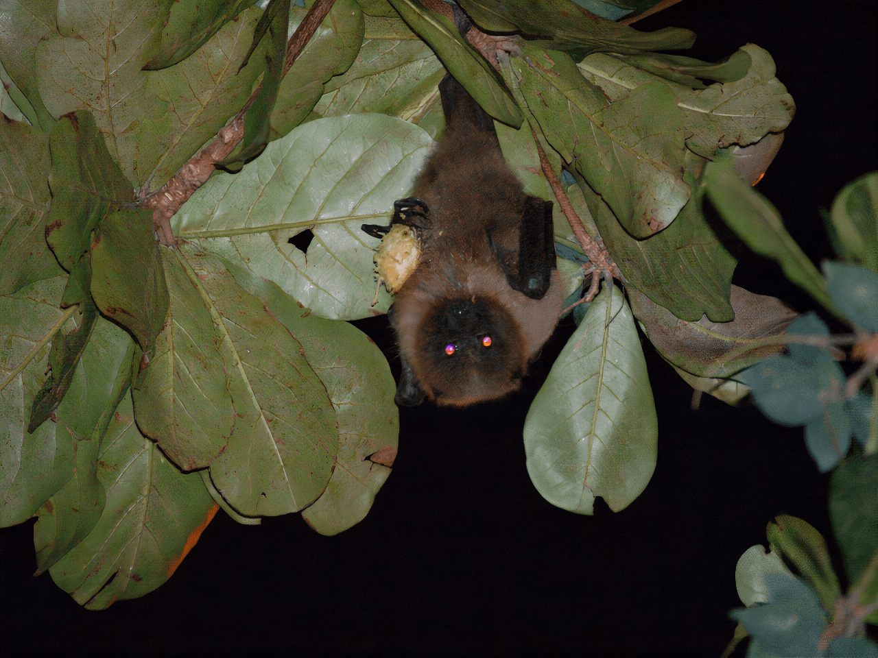 沖縄にはこのサイズのコウモリが住宅街にいるんですよね。沖縄で見たときにびっくりしました。さらにこのでかいコウモリをのら猫が狙っていたことにも驚きました。のら猫のタフさ。