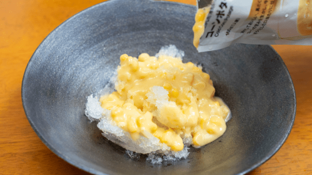 16時は藤原くんがかき氷の新しい世界に挑戦しました。おかず系かき氷です。
