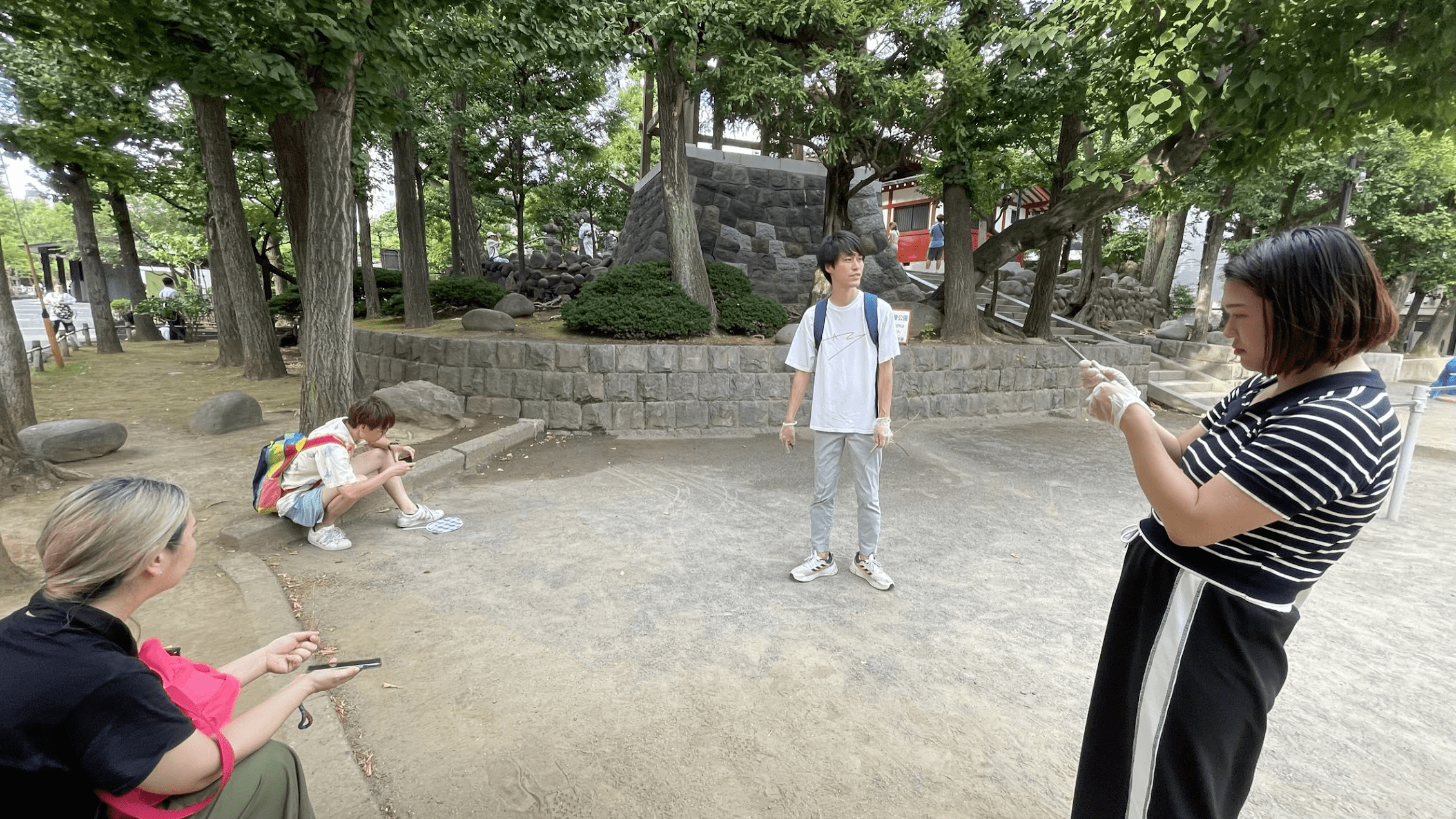 定規やコンパスは使用不可、そこらに落ちているものや自分の身体を使って半径20cmの円を描く大会です。真夏の夕方、全員ぐったりしていますが、ぴったり半径20cmの円を書いた猛者が現れました。