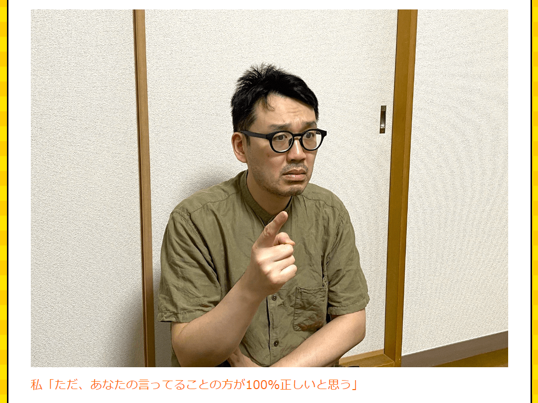 この展開のおかげで、奇っ怪な記事だけど分かりやすくなってます。反省している表情ではないことはさておき。