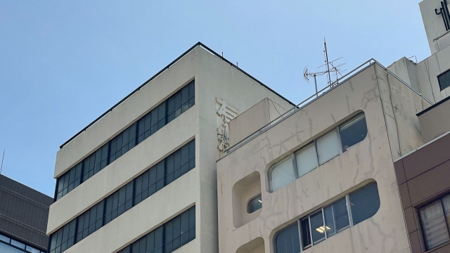 ビルとビルの隙間にロゴがある(トル―さん)