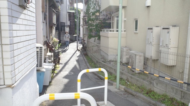 北鎌倉駅 横須賀線沿いに細すぎる道がある(米田梅子)