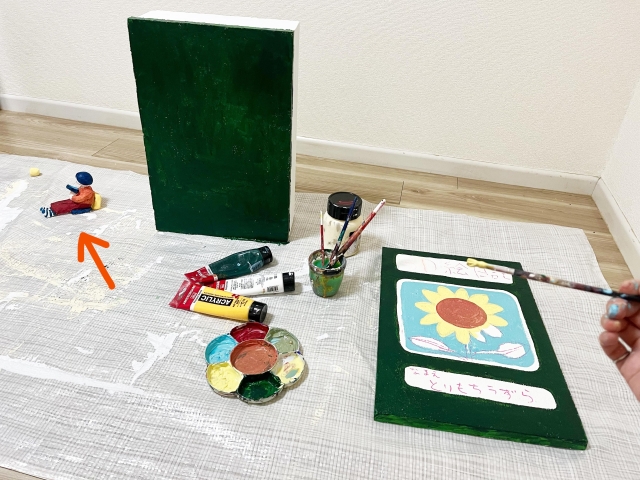 小道具は現実の一日にはなかったアイテムだが、 絵日記ってちょっと盛って描くものものだろう。紙粘土を余らせるともったいないので、お菓子などを追加することにした。