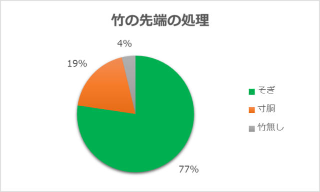 最初に違いとして目がいったのは、竹の先端の処理の仕方だ。