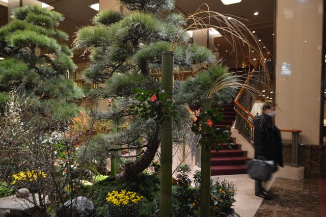 まずは帝国ホテルの門松。冒頭で玄関口に置いてある門松を載せたがあちらは何の変哲もない普通の門松である。問題はロビーに設置してある方だ。