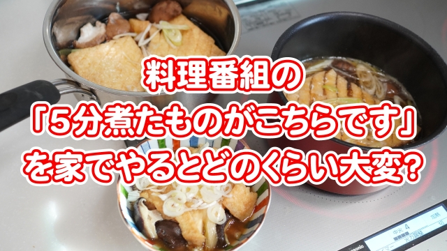 5分間煮る手順があるはずなのに、全工程の所要時間が5分以下になってしまった。