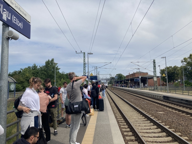この列車は私たちが降りた後にまたベルリン方面に折り返すらしく、ホームは反対方向に向かう人で混み合っていた。