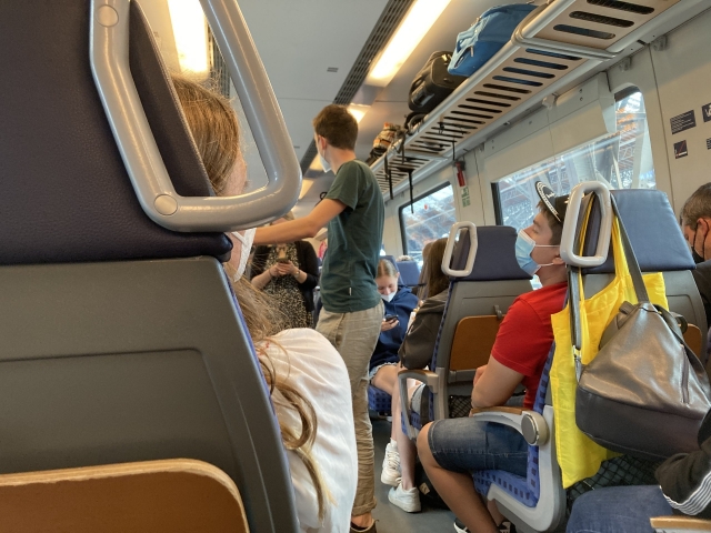 列車はすでに満席で、中央駅で人が乗った時点では満員電車とまでは行かない混み具合だったが、この時点で「もしかしたら7時間ずっと立ちっぱなしになるかも」という不吉な予感がした。