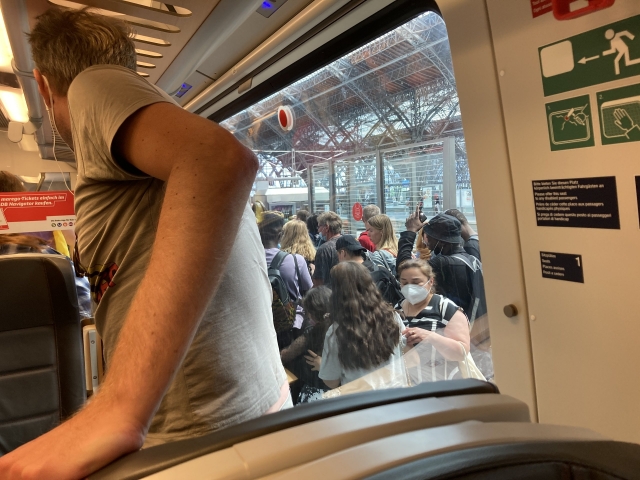 しかしバイエルン州に突入すると共に急激に混雑するようになり、東京の満員電車顔負けの混み具合になってきた。