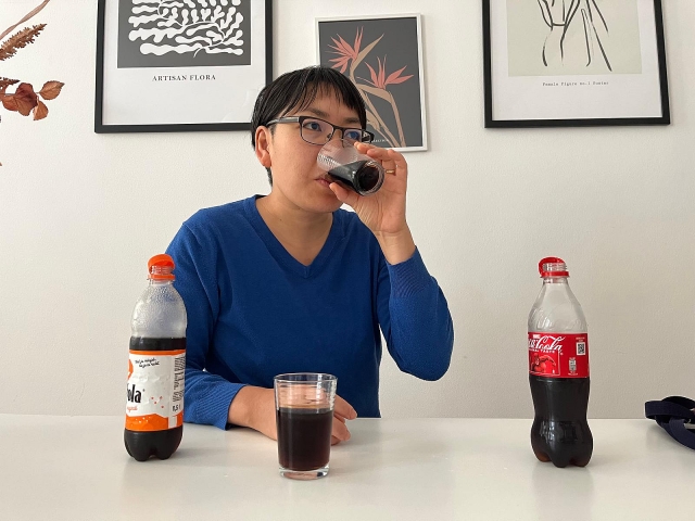 まず炭酸の強さが全く違う。コカコーラをつぐとシュワーッ!と泡立つのに比べて、コフォラはシュワリシュワリと穏やかな感じ。