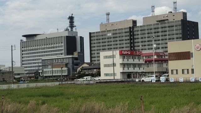 いかにも郊外という感じの広い道路を、郊外に向けてひたすら走る。ロードサイドに大型店舗が見えるその道を西に走ること30分、県庁が見えてきた。