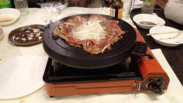 「ジンギスカン鍋は持っていなくて、家ではフライパンでやります。こっちだとスーパーで生ラムが普通に売ってるので豚肉みたいに塩コショウふって焼いたりもします。でもそれはジンギスカンだと思ってやってないかな」