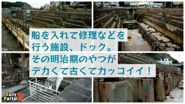 ドックとは、船を入れて修理などを行う施設のことだ。船を入れた後に水を抜き、乾いた状態でメンテナンスを行う、ドライドックという種類のものが一般的。ちなみに、人間ドックのドックもここからきている言葉だったりする。