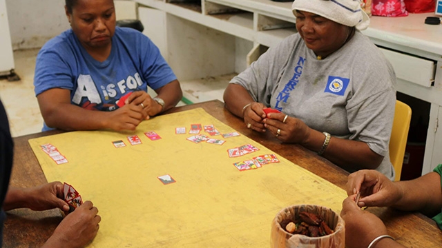 所用でパラオの短期大学に行った時、ちょうど昼休みだったのですが、どこからともなく聞こえる「ツキミデイッパイ」「イノシカチョウ」という言葉。なんと、おばちゃん達が花札をしていたのです。彼女達からしたら何気ない日常でしょうが、ここは日本から遠く離れた異国の地。かつて日本が統治していたことを感じさせます。