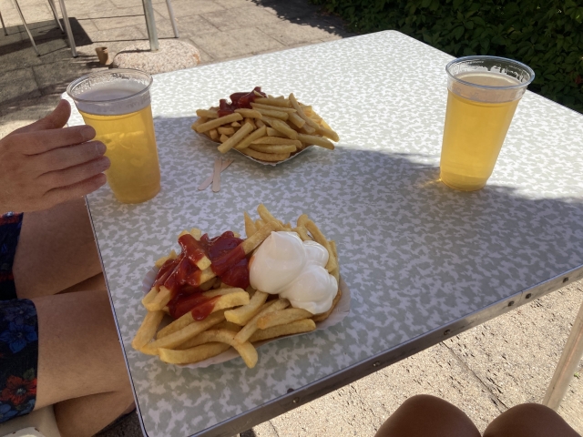 揚げたイモに、大量のマヨネーズとケチャップ。恐ろしい量のカロリーだと思うが、今日はカロリーを気にしない。