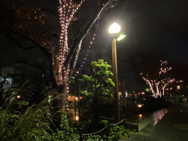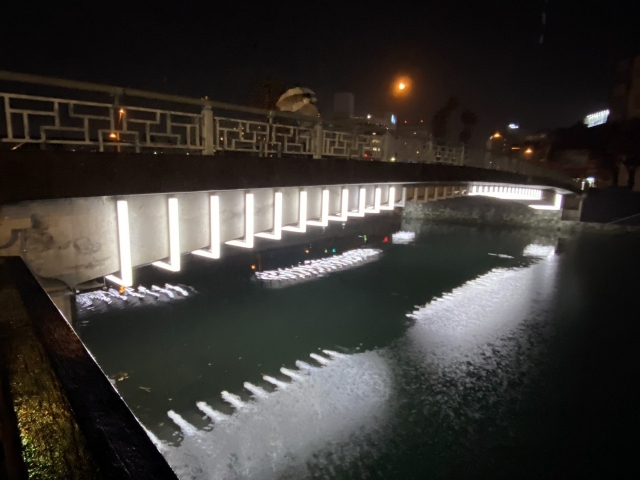 たしかに橋のライトアップは水面に写って映える。ただ、橋以外のちょっとした場所にもLEDが仕込んであるのだ。
