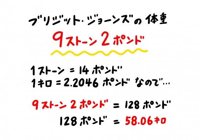 もしやと思い、大ヒット映画にもなったイギリスの小説「ブリジット・ジョーンズの日記」を確認してみると、体重がストーンで書かれていた。