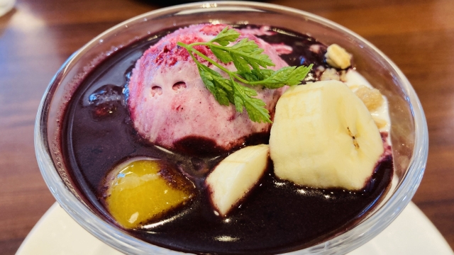 アサイー自体は酸っぱくないのだけど、真ん中にカシスのシャーベットが登用されておりベリー系の酸味をいかんなく発揮している。