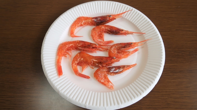 月餅:「甘えびの頭にはトゲがあり、口腔内で刺される恐れがあります」って書いてありますね。