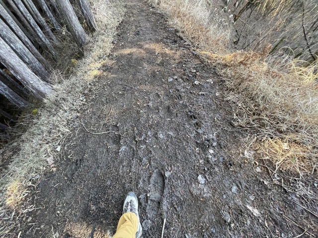 予定してたコースを最後まで歩くのは時間的に厳しく、最後はショートカットして3kmほど短くなりました。半日ドロドロの登山道を歩いたせいで、靴はごらんの有様。ズボンも少し汚れてしまいました。