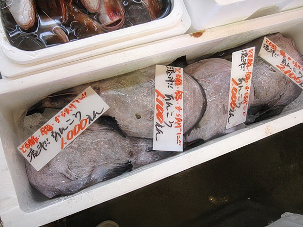 このように市場内にはいろいろと興味深い魚介類が並んではいるのだが、本日の目的はあくまであんこう。見ているだけでも楽しい市場なのだが、買いたいものがあると市場巡りはぐっと楽しくなるよね。