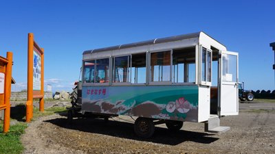 観光地として人気なのは海沿いの、地図でみるとちぎれそうなほっそい砂州、野付半島を臨む尾岱沼(おだいとう)地区である。