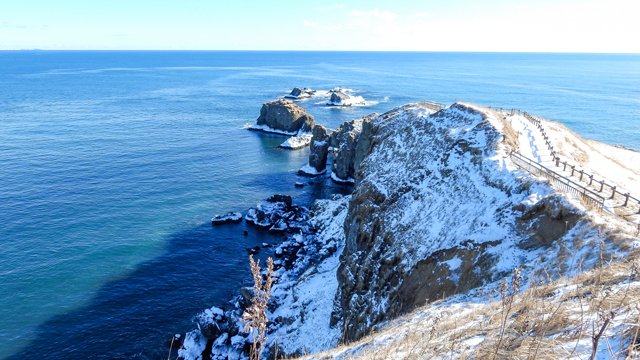 海面から約40mという断崖絶壁の岬で、この上なく絶景なのだが吹き荒ぶ風は力強く刺すように冷たい。