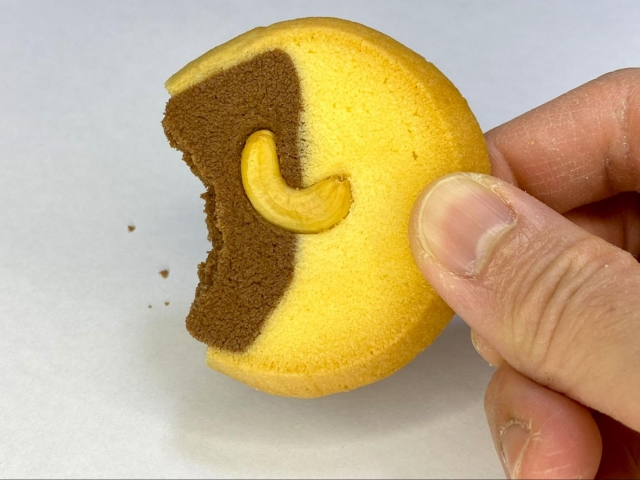 ココア生地とクッキー生地の対比が、陰と陽を思わせる。右へ左への広角打法。食べる時はどちらか片方ずつ楽しんでも、真ん中をガブリといっても、どちらも楽しい。