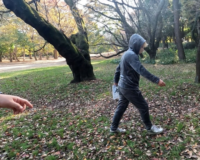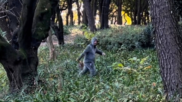 ビッグフット気分があがったところで茂みを歩いて引きで撮ってもらおう。