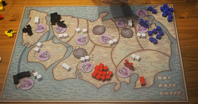「四角いコマが兵を表す」「サイコロの出目によって配置する兵の数が決まる」という重要なポイントを押さえているが、「城の防御力」という謎の概念により、深みのないゲームが生まれつつある。