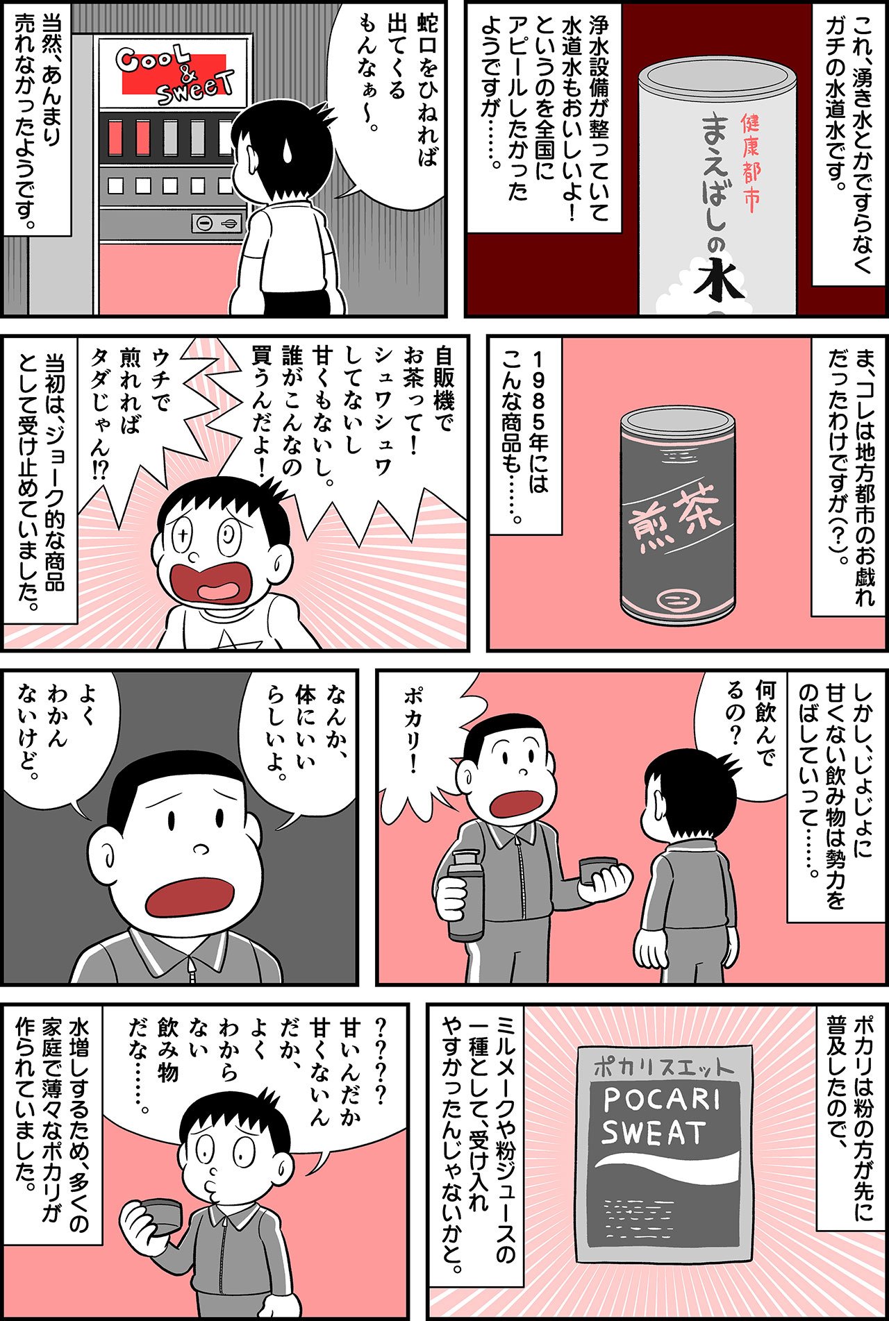 その後、バイト先のお弁当についているペットボトルのお茶を飲むようになり、やがて自分でも買うようになって……。いや、それでもいまだに「水は買うもんじゃないだろ!」と思っていますが。