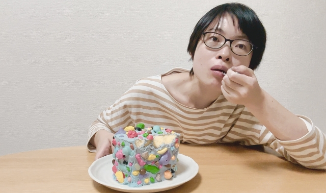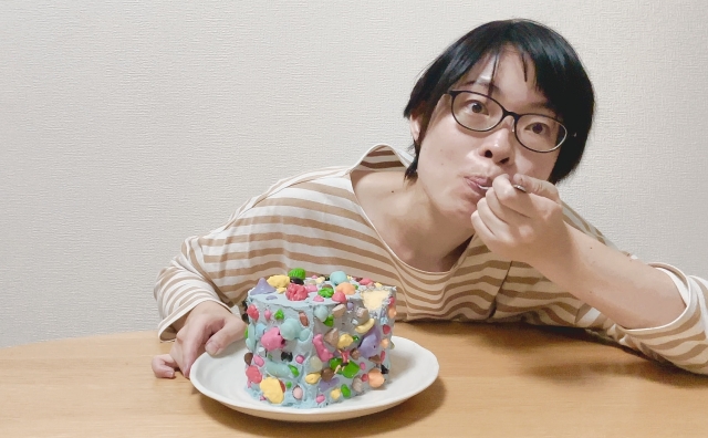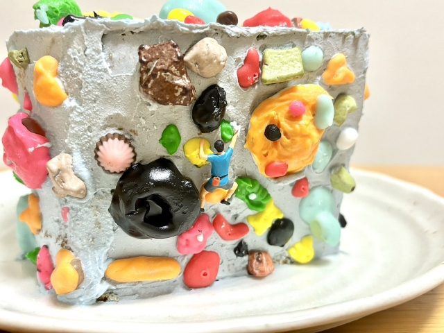 ボルダリングケーキは大きめといえども、私の10分の1くらいの大きさしかありません。
